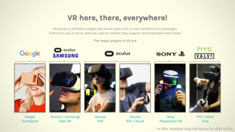 [{"content":{"location":"kirby","image":["file:\/\/LXr4JnZH2RVJmT2D"],"src":"","alt":"","caption":"","link":"","ratio":"","crop":"false"},"id":"dbd56465-b53a-4be2-ae60-db59058a572a","isHidden":false,"type":"imageBlock"},{"content":{"text":"The virtual reality (VR) landscape is expanding rapidly and, with all the major players making a big push to market in 2016, it's easy to become overwhelmed. At Schell Games, we've prepared this handy presentation<\/a> to guide you through VR-land and help you become familiar with the prominent VR platforms in the industry. Sometimes it\u2019s easy to get these headsets mixed up: they all seem so similar! But in reality, each of them brings something special to the table, while also presenting its own set of challenges.<\/p>One of the keys to making great VR is being intimately familiar with the strengths and limitations of the medium. Each platform, when leveraged properly, can open the door to a magical experience. If you\u2019ve seen someone smiling, dodging an obstacle, looking around, going \u201cwhoooaaaa\u201d or getting out of a virtual character\u2019s way while wearing a VR headset, then you know what we\u2019re talking about. We hope this information will shed a little light on the world of VR so whether you\u2019re experiencing, funding or creating these experiences, the way forward feels a little clearer.<\/p>Enjoy the presentation<\/a>!<\/p>"},"id":"df40a6b0-d79f-4ea9-a5a4-86c456a4acee","isHidden":false,"type":"textBlock"}]