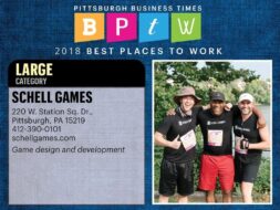 [{"content":{"location":"kirby","image":["file:\/\/iPjtv0Rh094Izqfx"],"src":"","alt":"","caption":"","link":"","ratio":"","crop":"false"},"id":"b89e62cd-4e37-4e8f-8a45-8ea3ec33a30a","isHidden":false,"type":"imageBlock"},{"content":{"text":"For the eighth time in a row, Schell Games was recognized by the Pittsburgh Business Times as one of the city's \"Best Places to Work.\" Each year, a survey is sent out to companies across the city for its employees to fill out anonymously. Once the results are compiled, the business has to reach a certain score in order to receive recognition. The event was held at the Westin in downtown Pittsburgh.<\/p>We're proud of our amazing team!<\/p>"},"id":"dfb4078b-8f8a-44d4-9296-736e99f54228","isHidden":false,"type":"textBlock"},{"content":{"location":"kirby","image":["file:\/\/MWW9OHxc97oOrImO"],"src":"","alt":"","caption":"Pictured: Audio intern Daniel Cohen, Marketing Associate Dwayne Waite Jr, VP of Human Resources and General Counsel Christopher Arnold","link":"","ratio":"","crop":"false"},"id":"02a0f370-ca5f-473b-a25c-eae3c2c75fcc","isHidden":false,"type":"imageBlock"}]