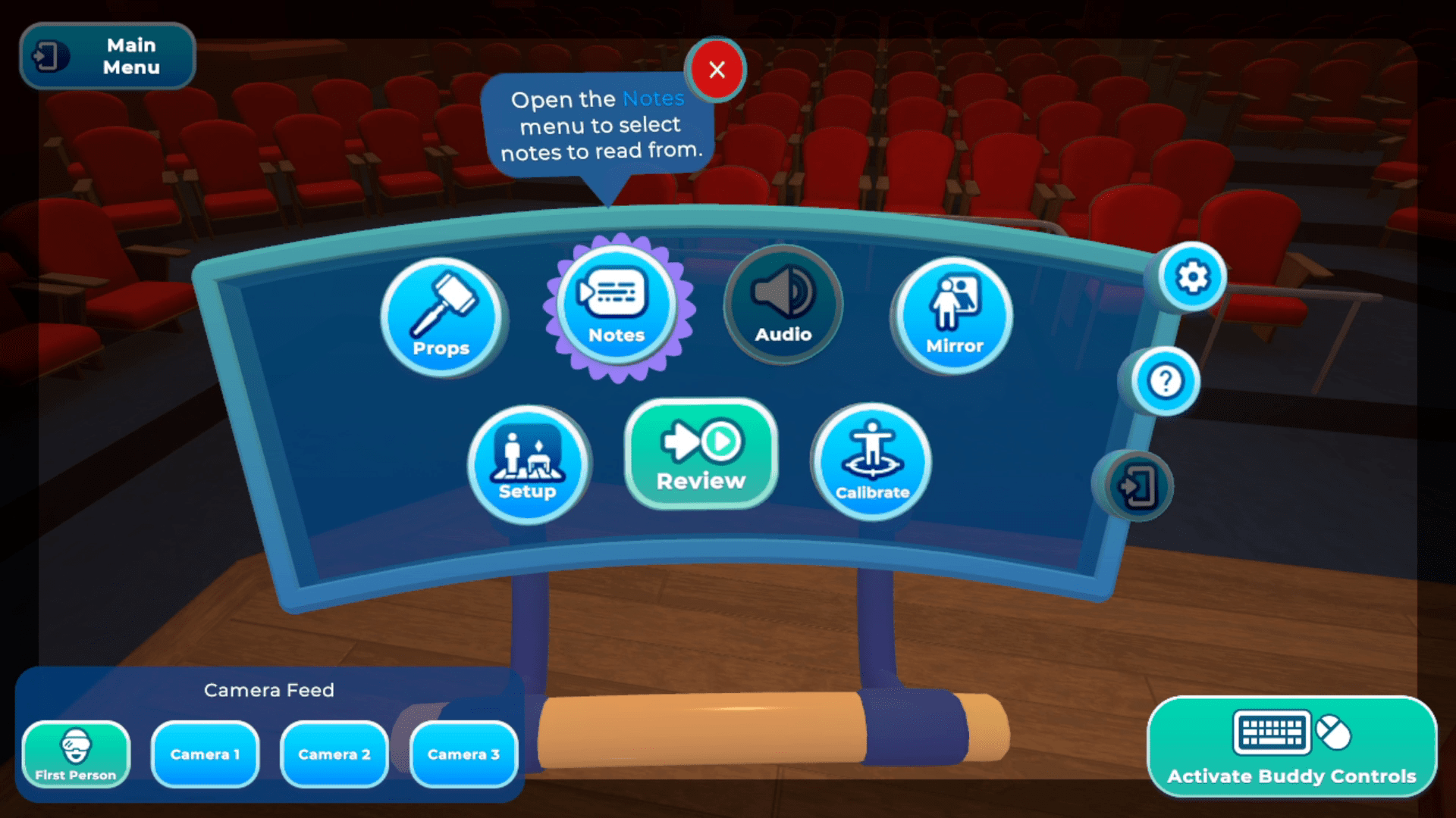 - User Experience Tutorial pop-ups inside the VR headset guide learners through their first playthrough. The interface is simple and easy to use and was designed with accessibility in mind.