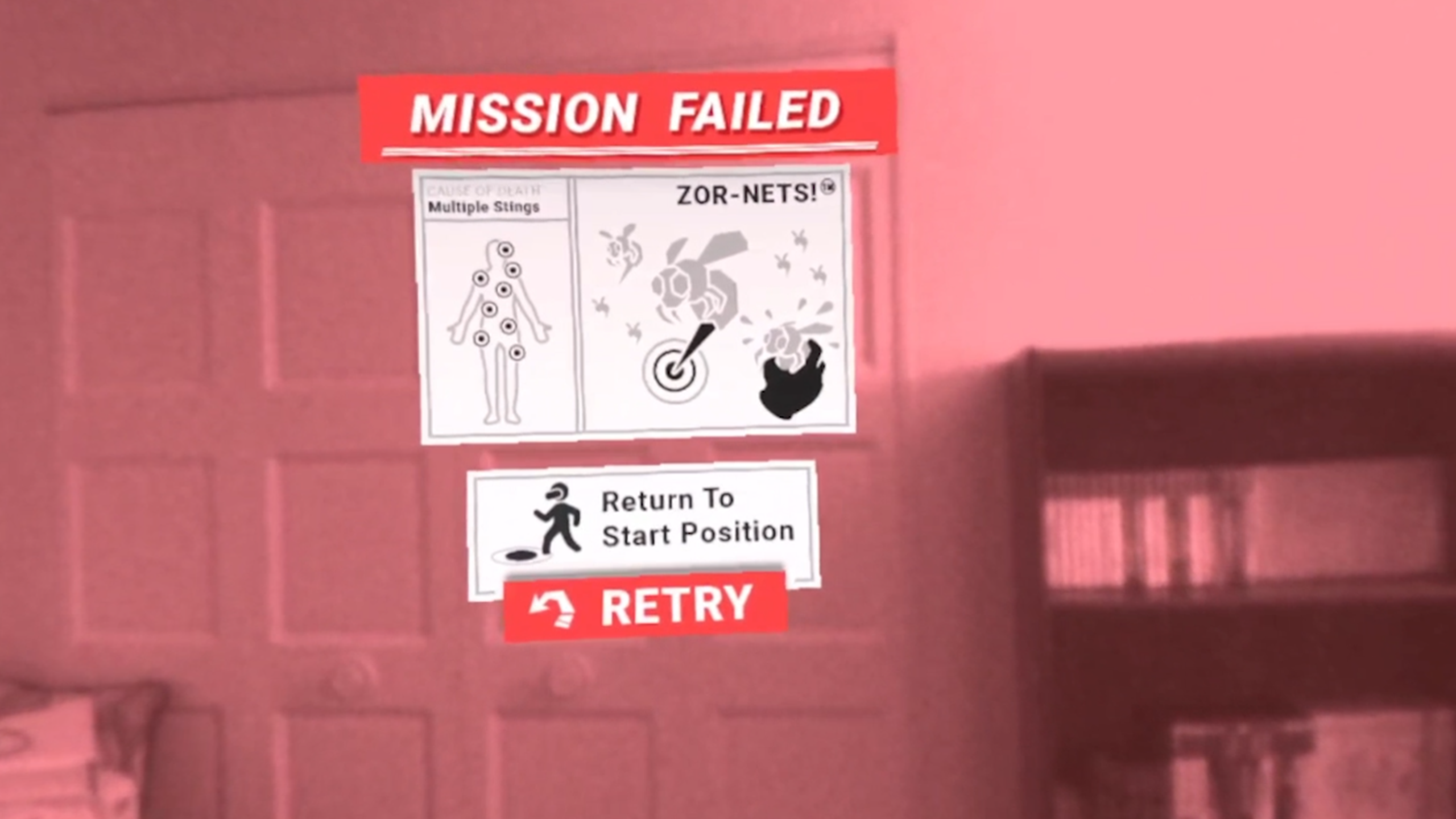 I Expect You To Die: Home Sweet Home is a mixed-reality (MR) escape room experience developed by Schell Games. Unlike the main trilogy, which takes place in fully virtual environments, Home Sweet Home utilizes passthrough technology to transform the player's physical home into a secret agent's lab. Built on the Unity engine, the game tasks players with disarming a deadly Zoraxis delivery that has arrived in their own living room. By overlaying digital traps and gadgets onto real-world surfaces, the experience blends the physical and digital worlds, allowing players to stay present in their surroundings while solving high-stakes puzzles.